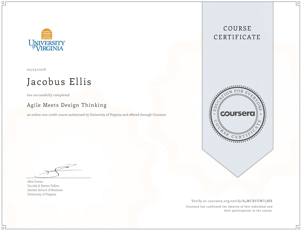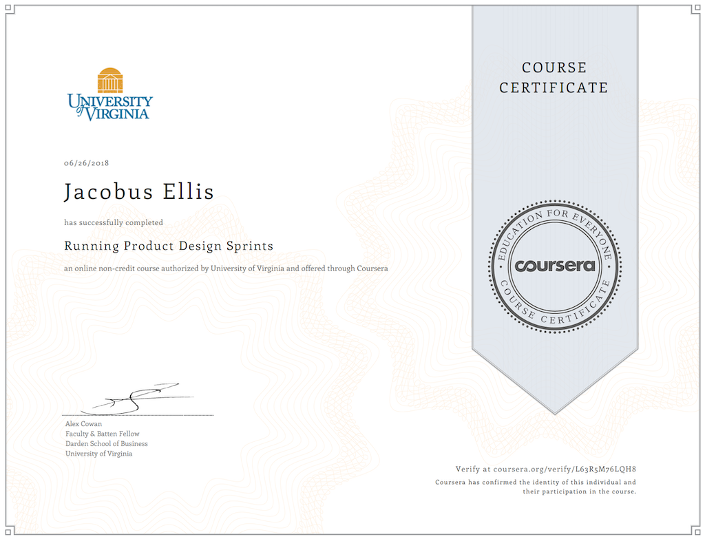 In this course I learned how to to plan, sell, and conduct design sprints that deliver valuable, actionable insights.