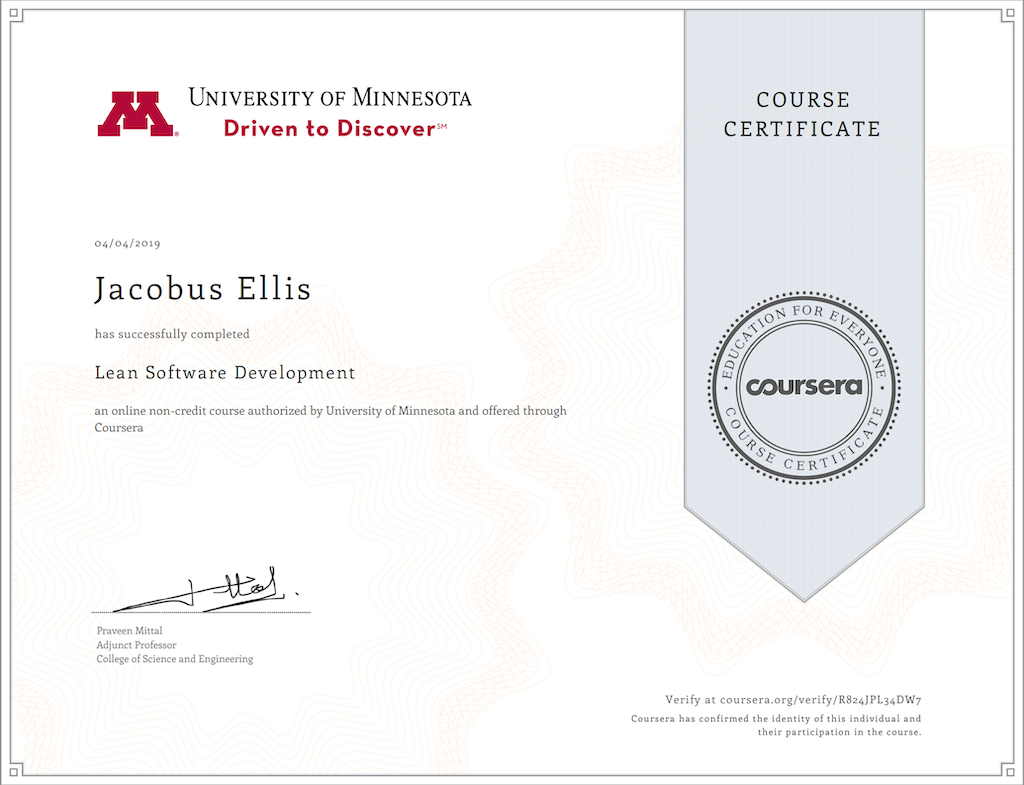 In this course, I explored lean concepts and covered some of the common Lean methods and techniques like Kanban, Value Stream Mapping, etc.