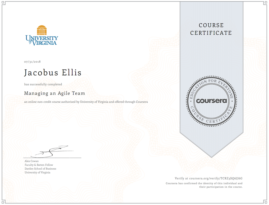 In this course I learned how to evaluate and explain the relevance of concepts and practices from the agile development methodologies.